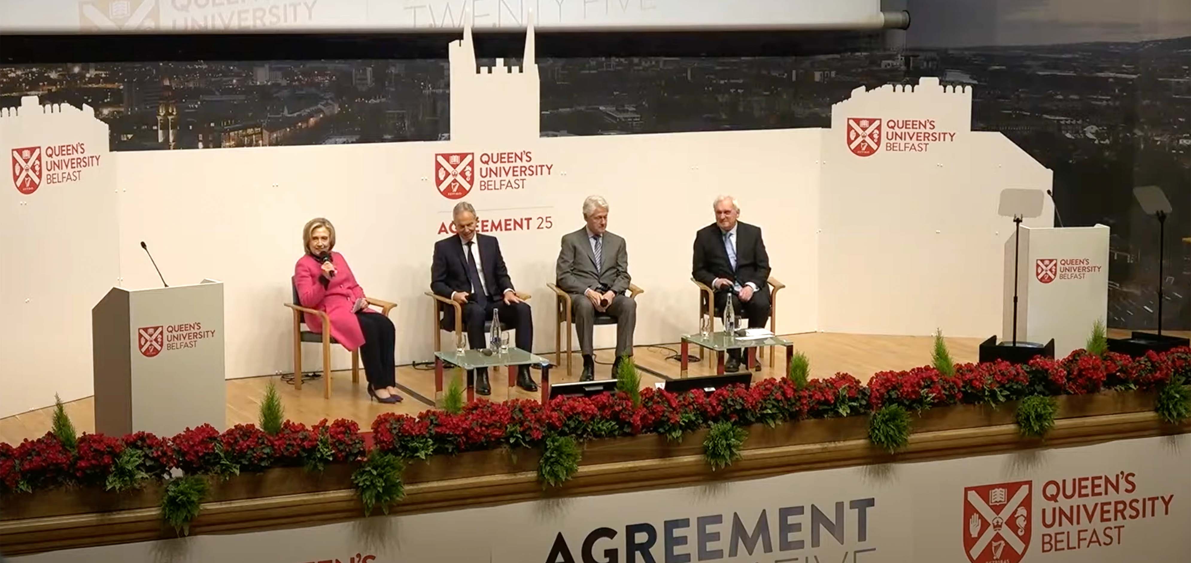 The focus of the world was on Belfast when global political leaders past and present arrived in Belfast to mark the 25th anniversary of the Belfast/Good Friday Agreement The three-day conference was hosted by Queen's University Belfast. Agreement 25 stands as a testament to the power of diplomacy and the pursuit of peace in Northern Ireland. This historic gathering brought together a constellation of political luminaries, including former President Bill Clinton, Senator George Mitchell, former Prime Minister Tony Blair, former Taoiseach Bertie Ahern, Gerry Adams, Hillary Clinton, former Irish Presidents Mary Robinson and Mary McAleese, Prime Minister Rishi Sunak, Irish Taoiseach Leo Varadkar, European Commission President Ursula von der Leyen, and European Council President Charles Michel.