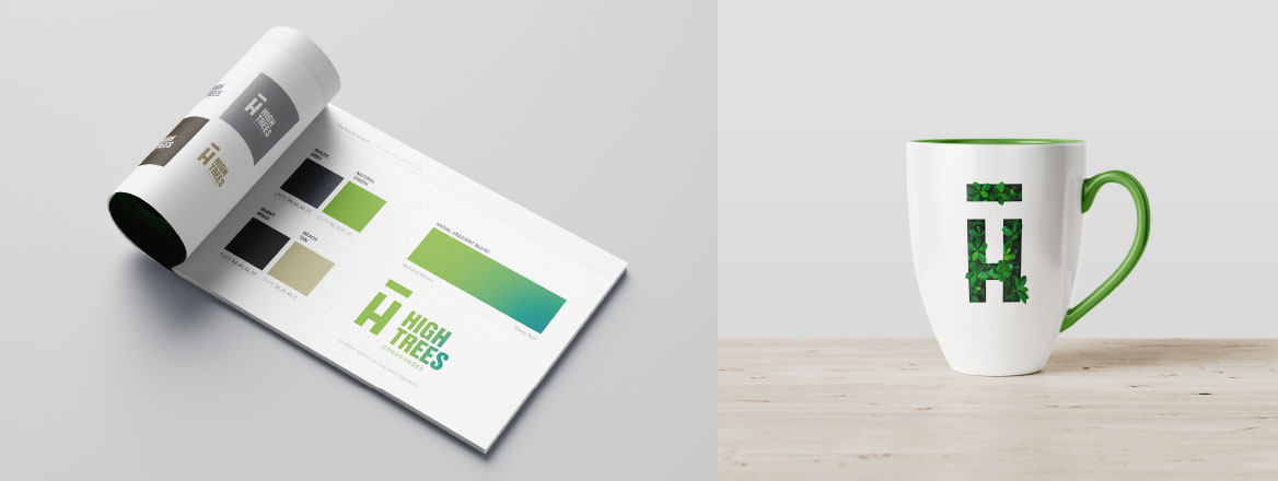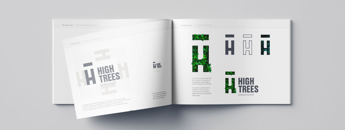 The logo grew from the name with the H and T merging and we then brought through the foliage from trees to provide a sense of nature and greenery, which are important features for the developer. We knew from interviewing the client that greenery would be important to the site, as it was to be more than concrete on the edge of a town and green space would be essential. This character was carried through to the naming of individual house types with each named after an indigenous tree type.